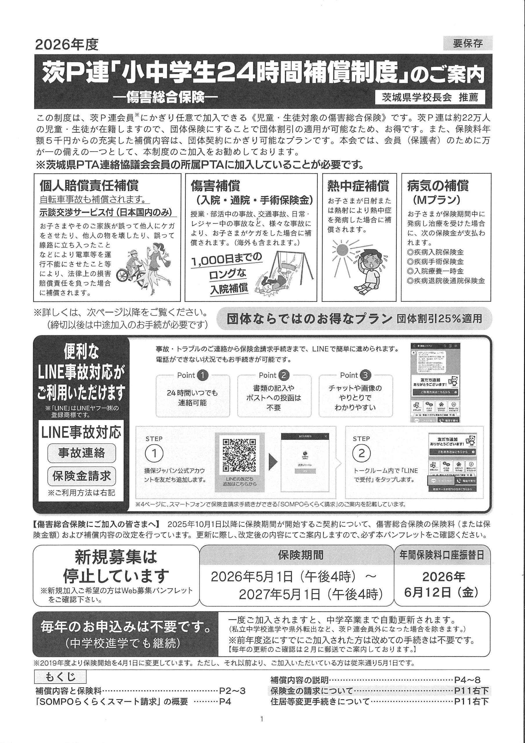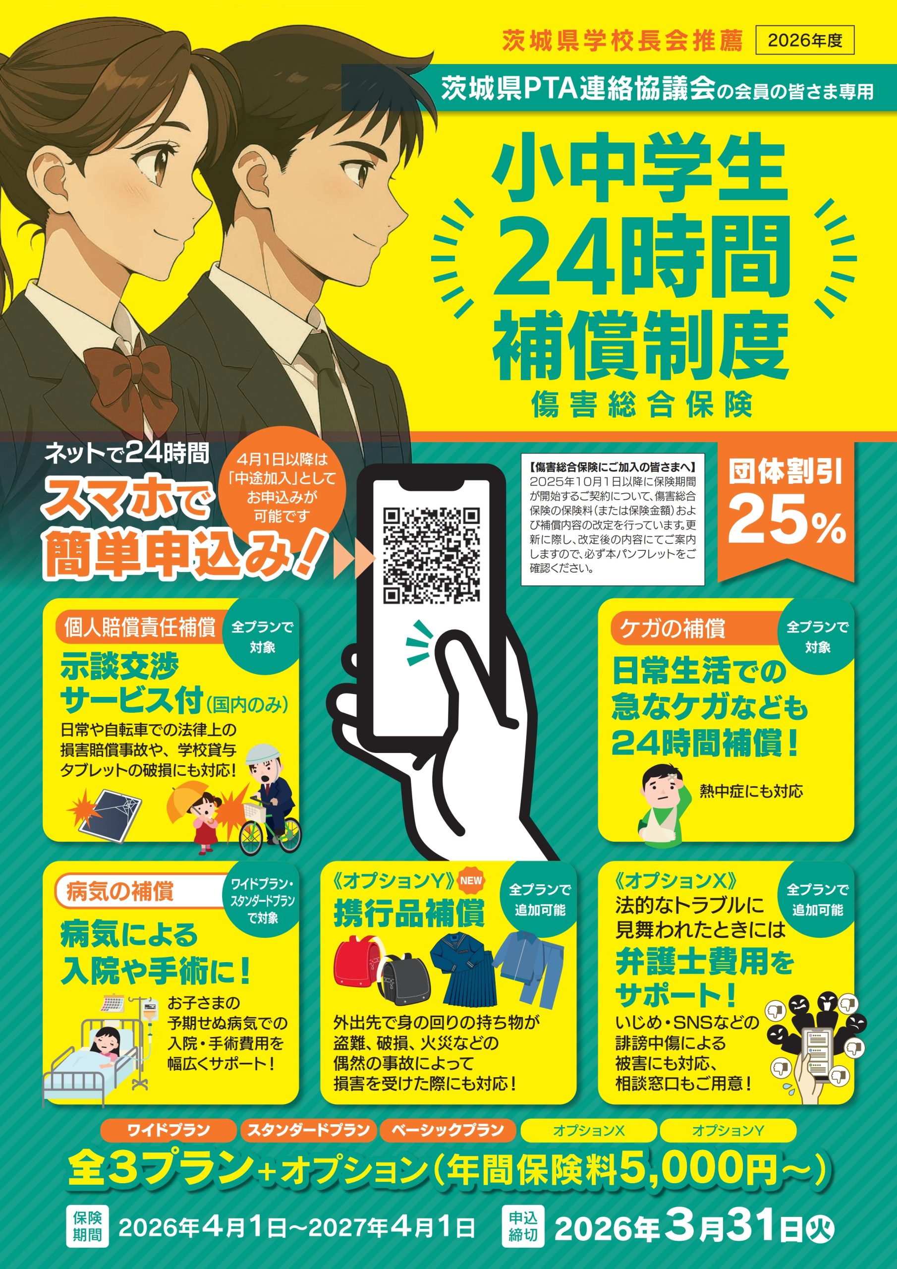 2026年度「小中学生24時間補償制度」加入のご案内